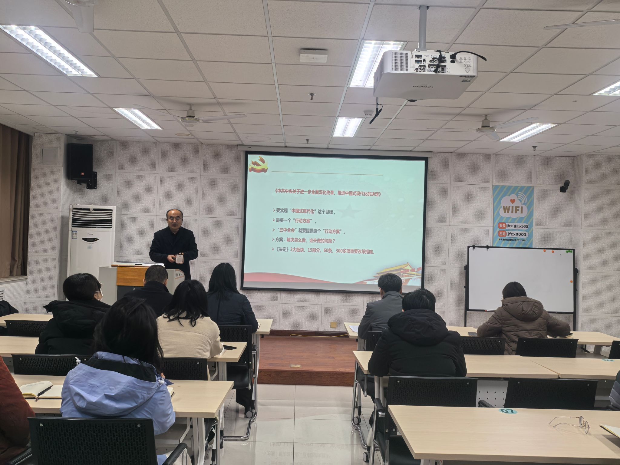 为深入学习贯彻党的二十届三中全会精神,凝聚改革共识,激发奋进力量,推动全会精神在开云体育App 落深落细、见行见效,12月19日,开云体育App 开展主题党日活动,邀请马克思主义开云体育App 副教授梁栋为全体教工党员作了题为《宣传贯彻党的二十届三中全会精神》的专题报告。报告会由开云体育App 党委书记史国普主持。