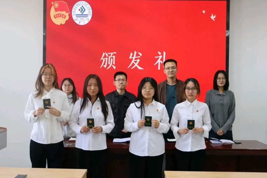 团委书记、2025级辅导员卢洪斌老师宣读新发展团员名单,与会辅导员老师为新发展团员逐一颁发团员证、佩戴团徽。闪耀的团徽不仅是一份光荣的政治荣誉,也承载着共青团员沉甸甸的责任与使命。