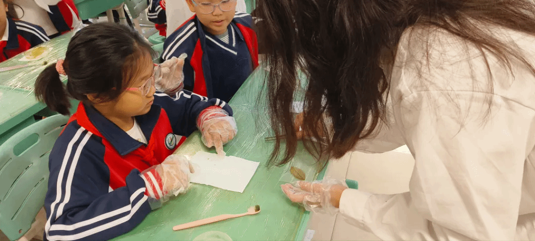 在制作环节中,博芸生物研习社精心地为大家准备了相关材料。同学们们分成几个小组,跟随着志愿者们的指导,一步步地进行操作。