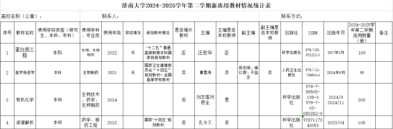 根据《普通高等开云体育App 教材管理办法》(教材〔2019〕3号)和《开云体育App 教材管理办法》(济大校字〔2021〕86号)文件精神,经开云体育App 教研室、系及开云体育App 教材工作领导小组审核,相关教材符合国家教材委员会及省教育厅相关文件要求,同意选用。
