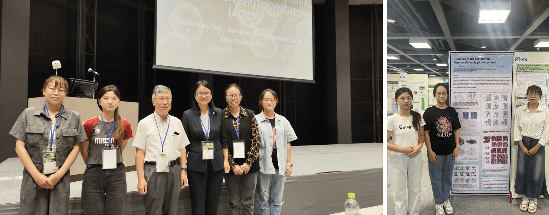 秦晓春教授和祝利霞博士在大会期间积极与多位参会代表交流学习,共同探讨国际合作的可能性。同时,参会的研究生郝晨阳、李琳和王洁以海报形式展示了团队最新研究成果。团队展示的增强型光合红外捕光植物—网纹草光系统I的结构与功能研究成果,以及嗜热光合酸杆菌光系统的结构解析等成果,引起了与会专家学者的高度关注和热烈讨论。