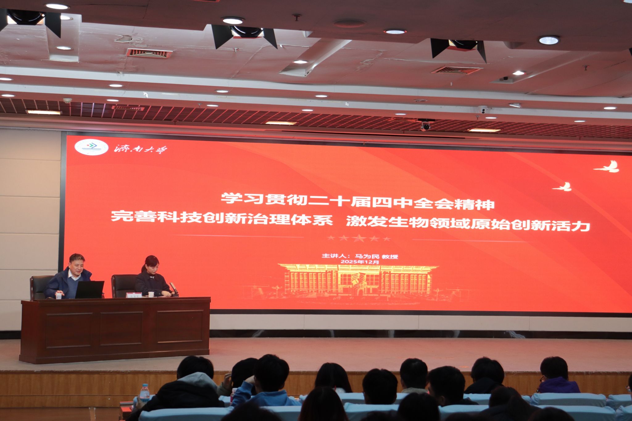 报告中,马为民以《学习贯彻党的二十届四中全会精神 完善科技创新治理体系 激发生物领域原始创新活力》为题,围绕“为什么学、学什么、怎么落实”三个层面,深刻解读了全会的重要意义以及“十五五”时期的指导思想、目标任务与战略部署。他指出,党的二十届四中全会将生物制造与量子科技、氢能和核聚变能等并列,纳入前瞻布局的未来产业范畴,这是党中央立足科技革命和产业变革全局作出的重大战略判断。这一部署直接将生物制造提升至国家产业发展的核心位置,使其成为培育新质生产力、推动经济结构转型升级的关键赛道,不仅为地方和行业布局生物制造产业提供了清晰的顶层设计,也对高校在人才培养、科技创新和学科建设方面提出了更高要求。