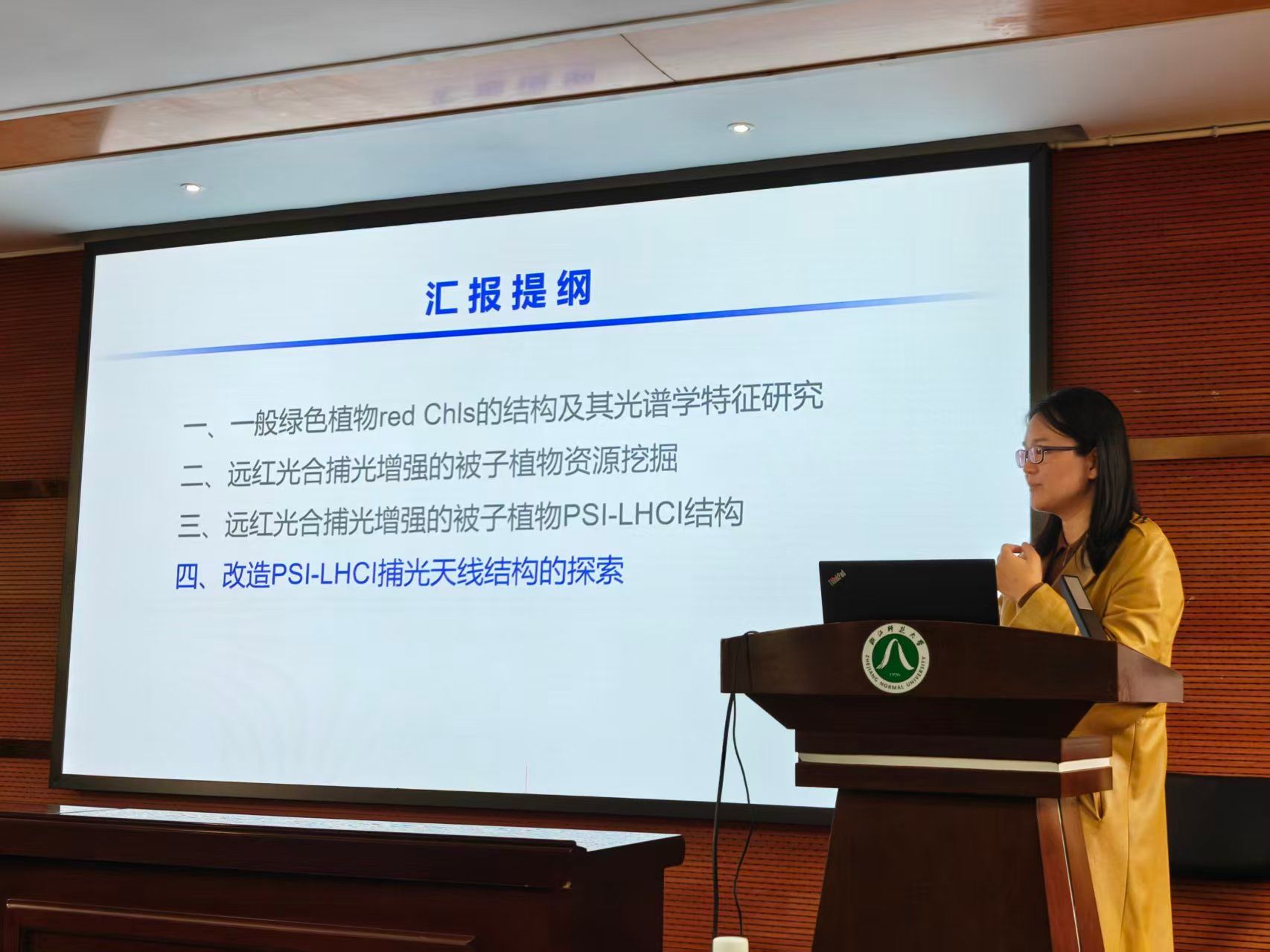 ,秦晓春院长作了题为《被子植物光合作用扩展红光光谱边界的探索研究》学术报告,并与浙师大师生就光合作用相关问题进行了深入交流探讨。