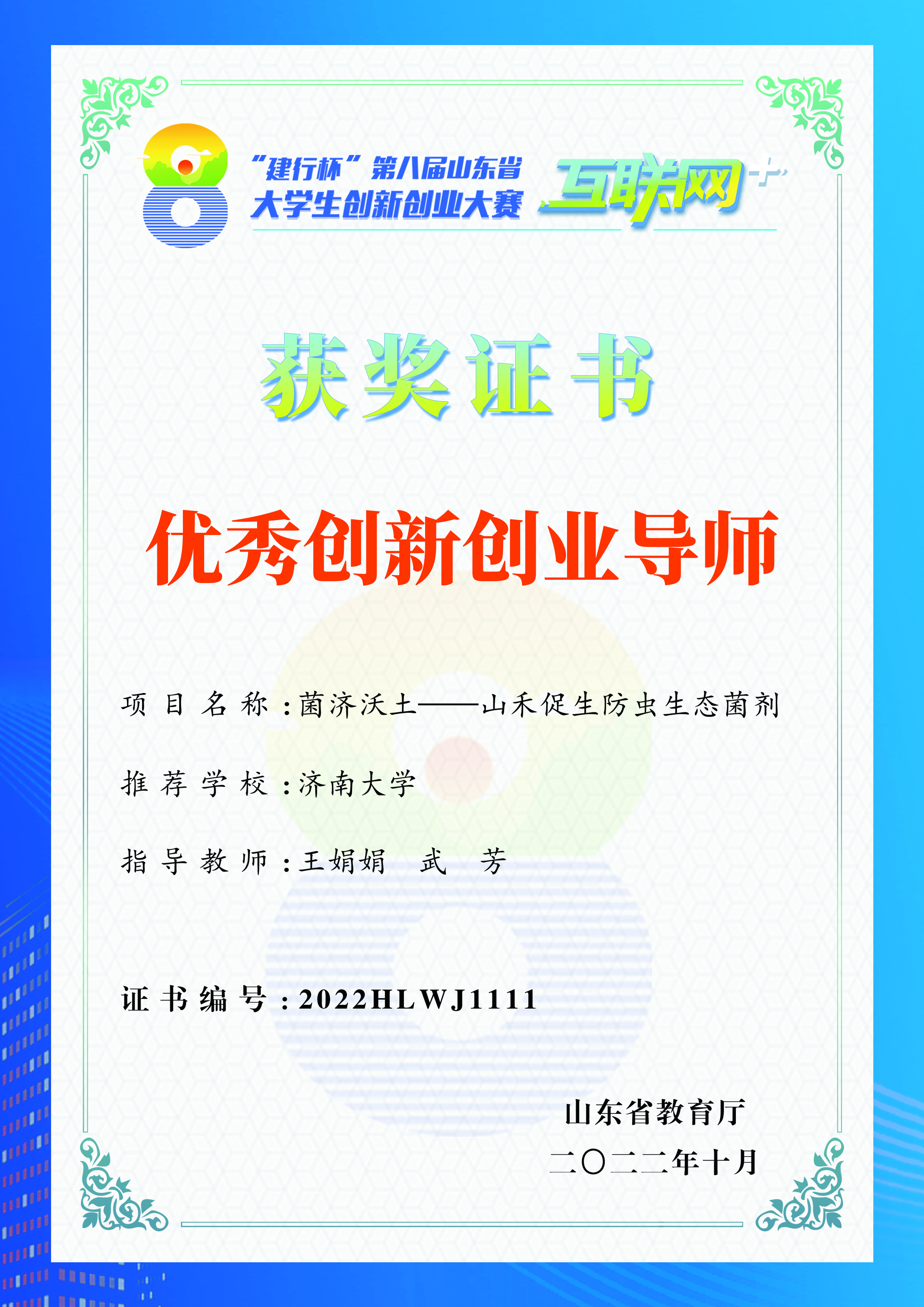 2位班主任荣获“‘建行杯’第八届山东省‘互联网+’大学生创新创业大赛优秀创新创业导师”称号,7位教师荣获“第十三届‘挑战杯’·建设银行山东省大学生创业计划竞赛优秀指导教师”称号。7个团支部获评“开云体育App