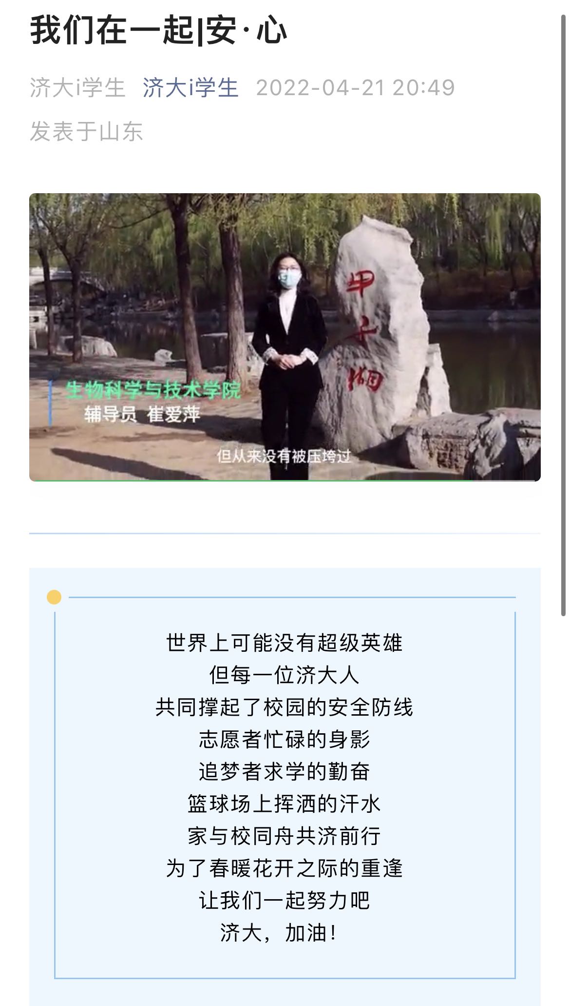 要闻、节气节日、同心防疫等。在“团徽闪耀”线上课堂,发布“回望百年辉煌路,“青”听团史忆初心”文章10篇,“回望百年辉煌路,青春作答知团情”学习资料10篇,帮助同学们学习团史,筑牢初心;邀请考研学子分享考研经验与感悟,策划“研途”看生科云端课堂,发布文章19篇;为帮助新生尽快适应大学生活和环境,开设“迎新特辑--新生指南”,发表文章5篇;开设“学习二十大,你问我来答”知识云课堂,更好的学习宣传贯彻党的二十大精神;策划录制“泉”心“城”意,同舟共“济”抗疫宣传片;征集并确定开云体育App