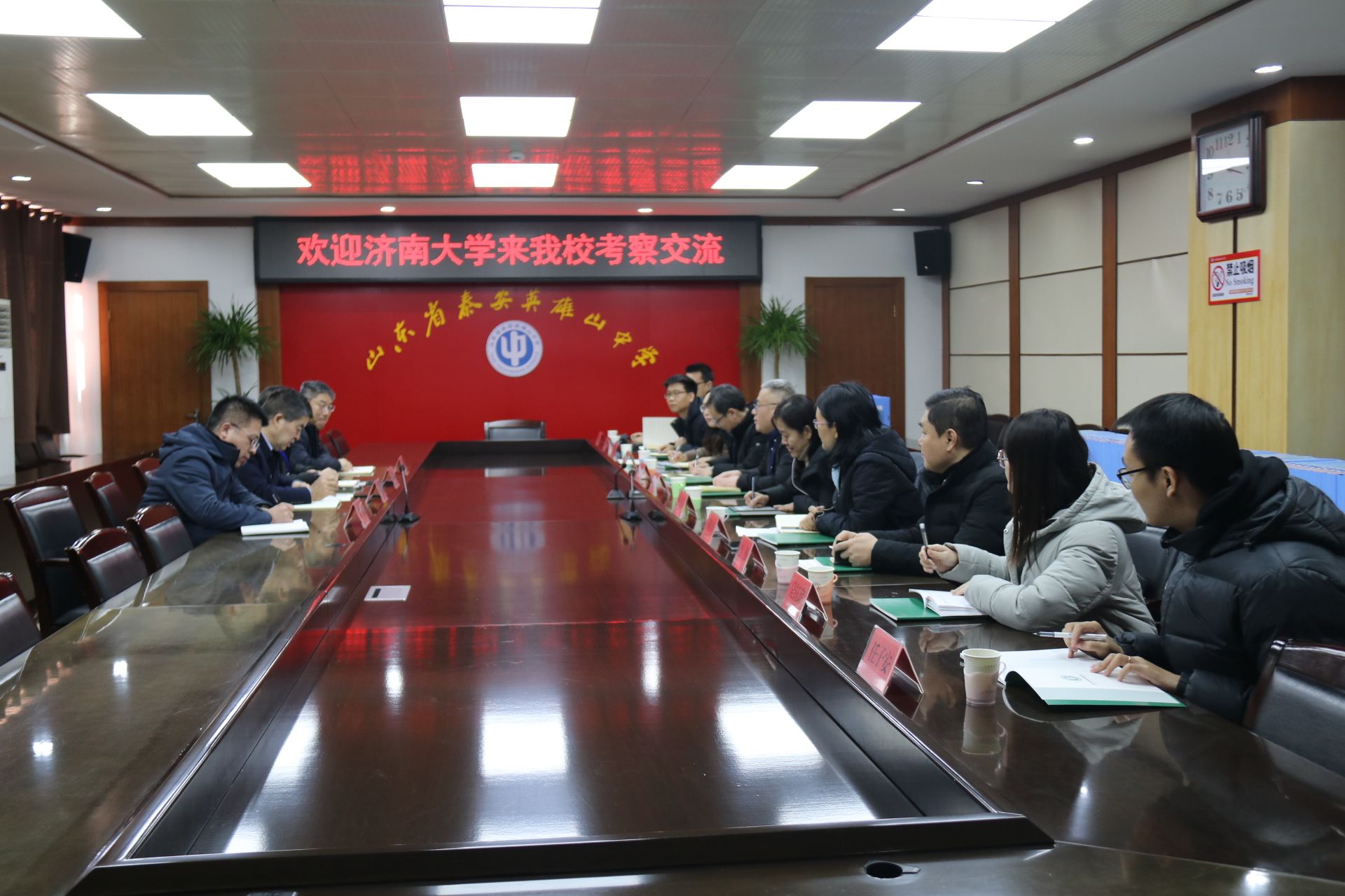 黄加栋一行来到泰安市英雄山中学,开展优秀生源基地回访及招生宣传活动。英雄山中学党委书记、校长李金山,副校长宋圣君、谢龙,党委委员苏宗新参加活动。