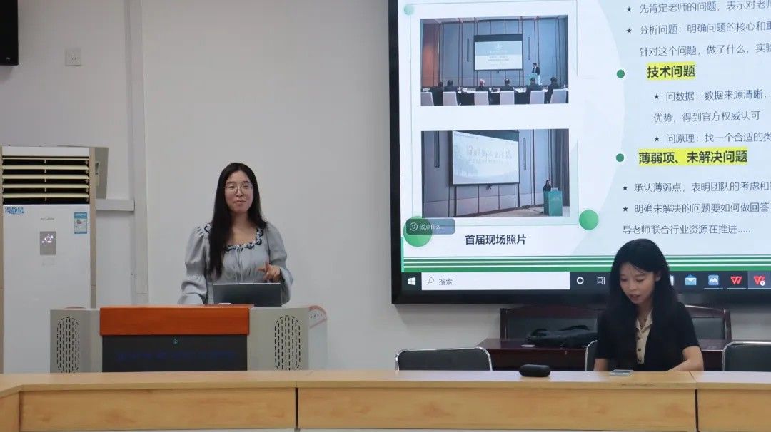 分享会上,白雅琪聚焦赛事文件解读,明确青年创新使命与选题方向,重点区分了各大比赛的特点,助力同学们精准匹配赛道,规避申报失误;李静雯在线上从风格适配、内容排布到细节打磨等方面,详细介绍了PPT的制作过程,并结合自身经历,分享团队合作技巧与时间规划方法,为同学们提供了实用经验;卢佩瑶聚焦答辩路演与个人成长,系统详解答辩逻辑构建、路演表达规范与感染力塑造要点,她强调,要注重项目的逻辑与思路,深挖细节、突出亮点,并传授了将“个人成长”融入大赛项目的经验。