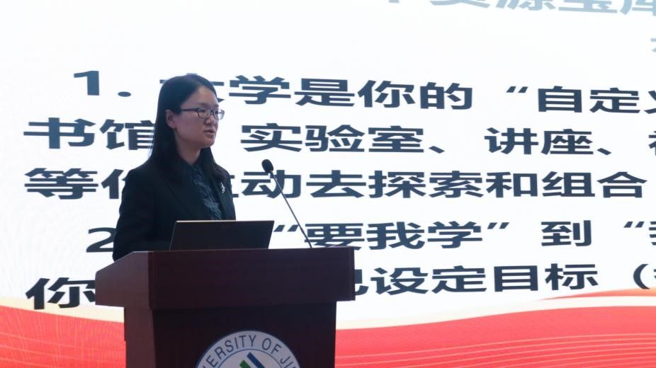 教师代表李慧结合个人成长和科研奋斗历程,向新生提出三点建议:用"科研思维"经营人生,把"逆境"当作磨刀石,让"责任"照见初心。她用玉米育种中的术语作比喻鼓励新生:大学就像一粒种子的萌发期,基因的表达需要环境信号的激发。愿同学们以求知若渴的赤诚为“光照”,以直面挑战的勇气为“水分”,在这片土地上生长出独一无二的人生图谱。
